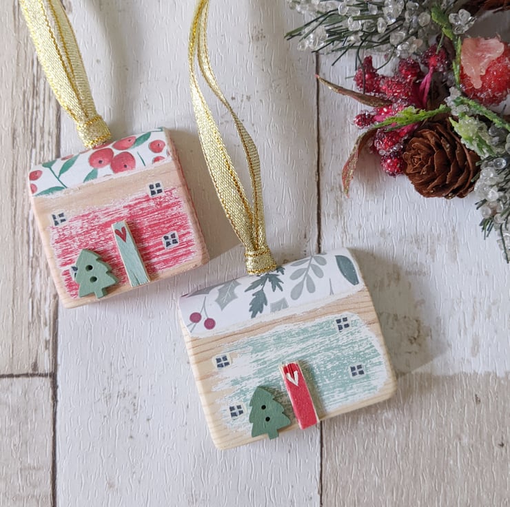 I have chosen two houses that compliment each other for this little set. Hang them together or give one as a gift!