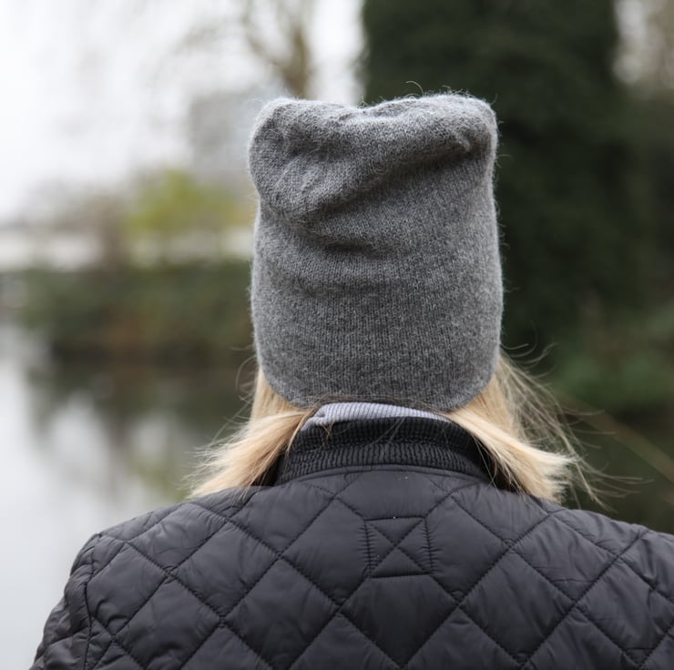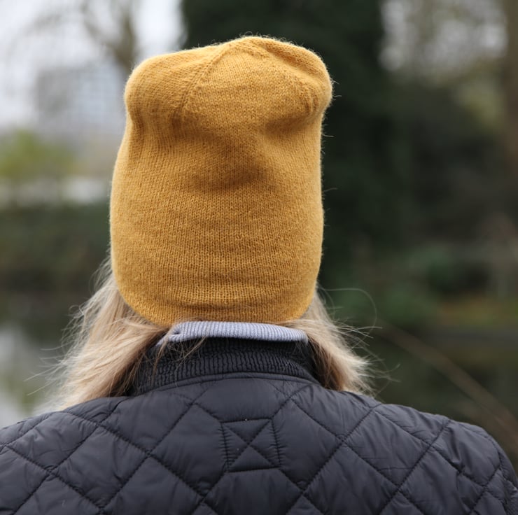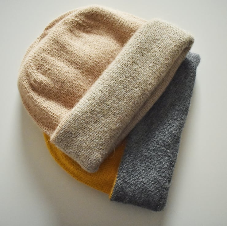 Lightweight, sleek and warm reversible beanie made from 100% alpaca yarn.