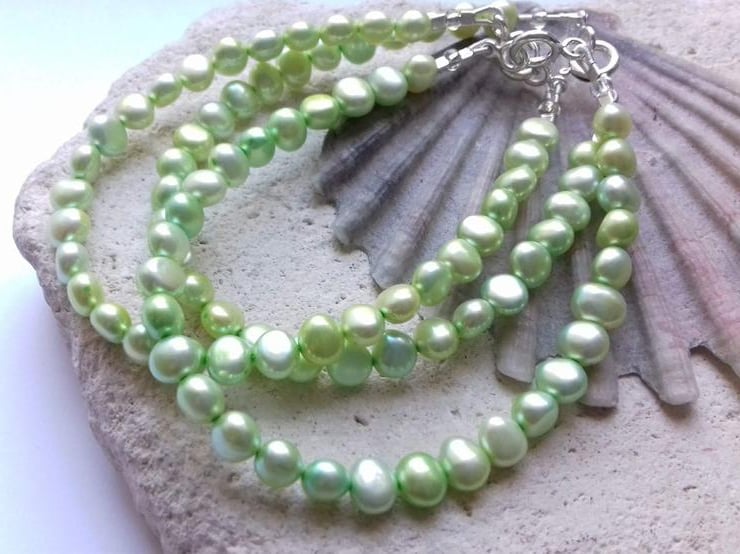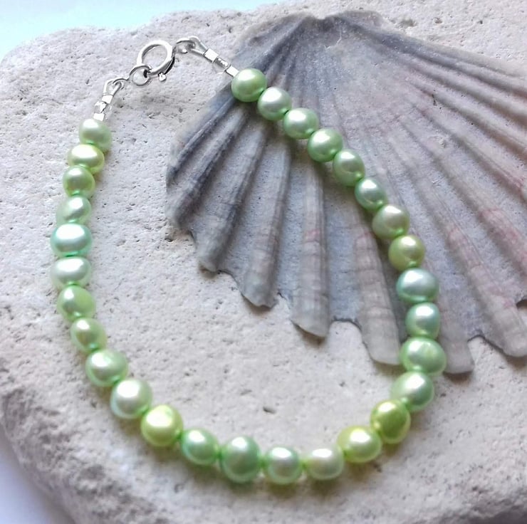 6mm Pale Green Freshwater Pearl Bracelet with Sterling Silver Bolt clasp.