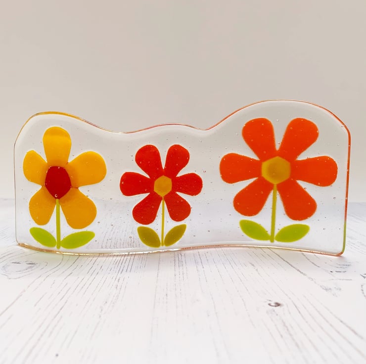 Fused Glass Warm Colour Retro Flowers Wave - Handmade Glass Sculpture