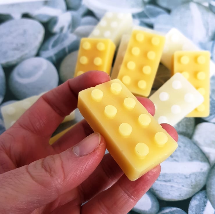 These bars here have been put into the shape of lego bricks. They make great gifts for the nerds among your craft friends - or to give yourself a bit of joy while using them.