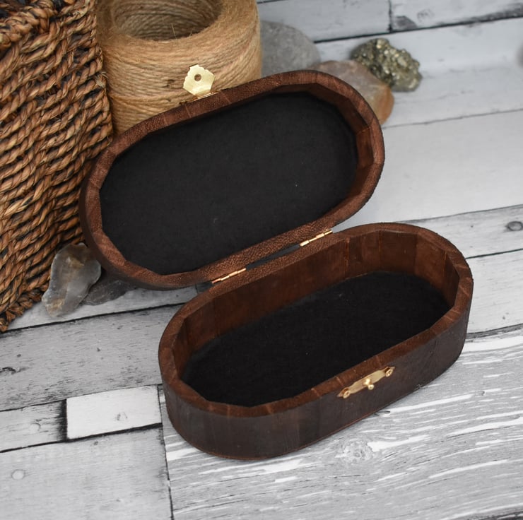 I usually burn wooden jewellery pieces, but sometimes like to create larger designs on boxes and more practical items. Sometimes I buy small batches of boxes, and other times I like to reuse and repurpose boxes and give them a new life!