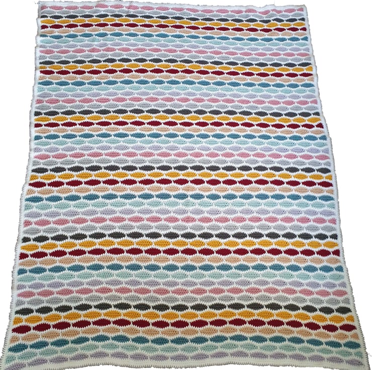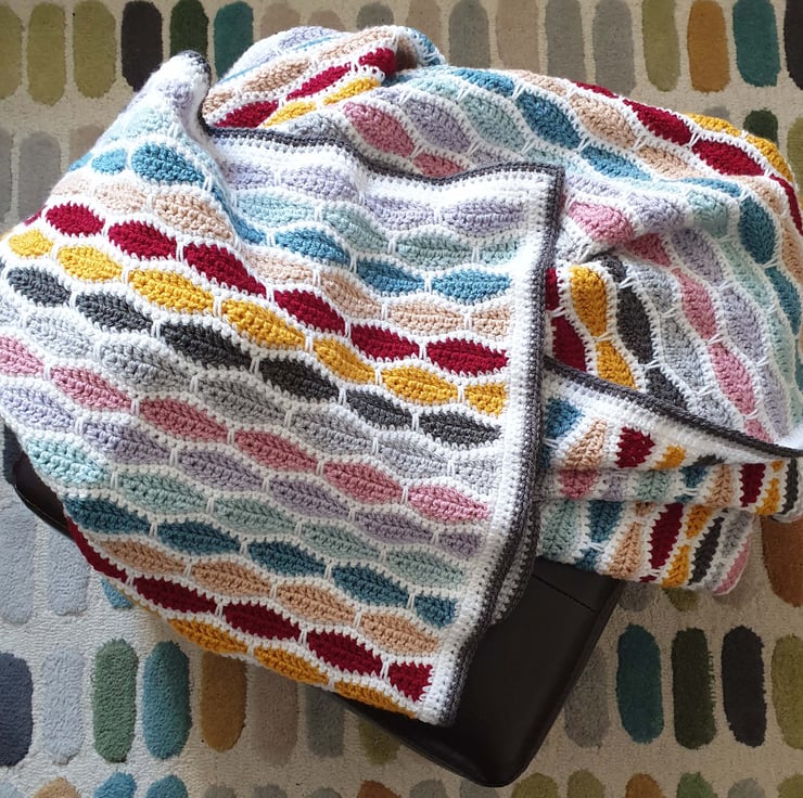 This modern crochet blanket is made in a vintage inspired colour palette, making for a lovely relaxing and cosy blanket, perfect for snuggling in front of the tv or with a good book.