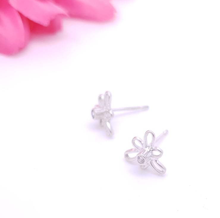 These sterling silver floral studs have been cast from our own mould and hand set before being polished to a mirror shine. They have post and butterfly backs.