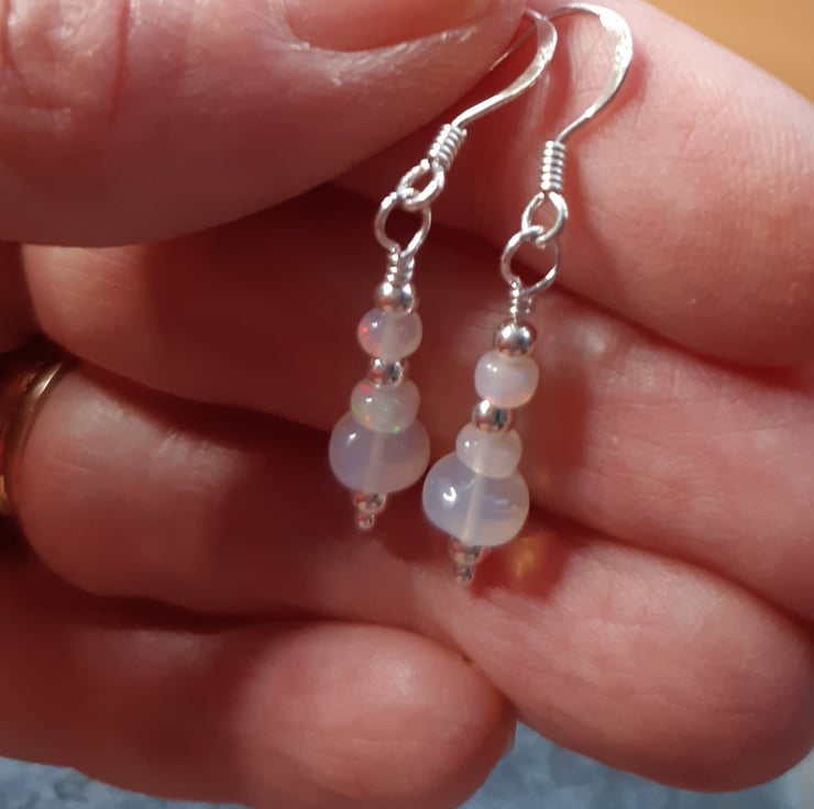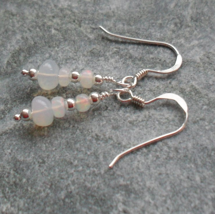 Small dainty drop sterling silver earrings with genuine Ethiopian opal
