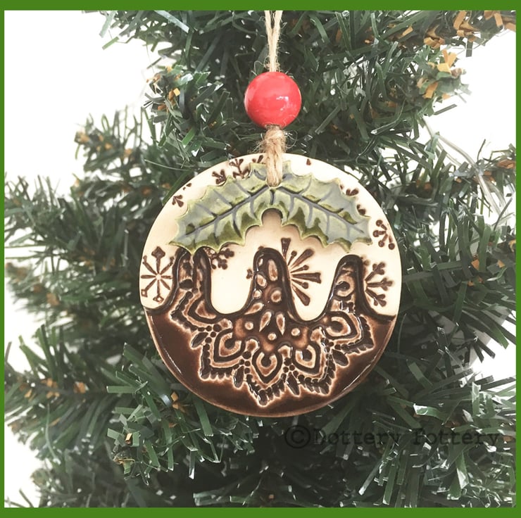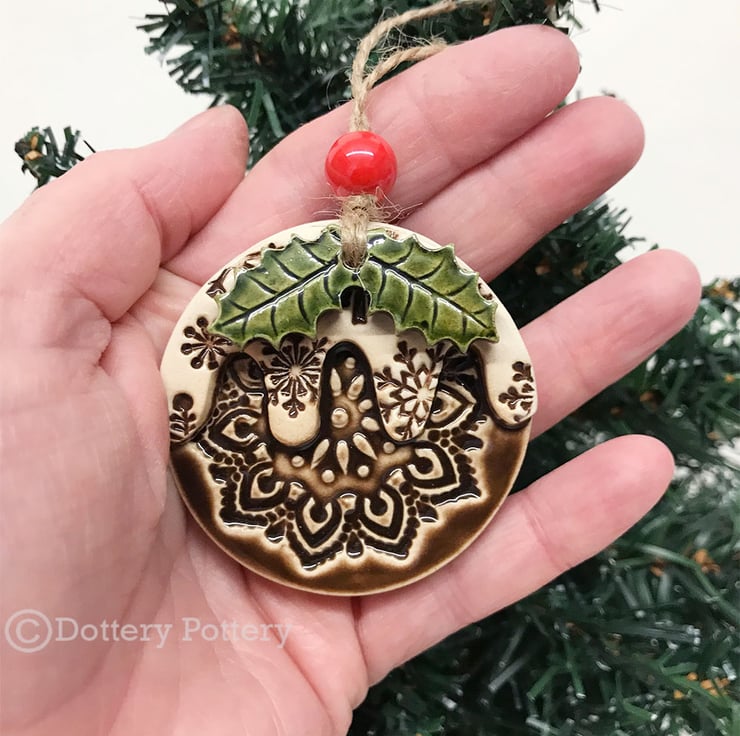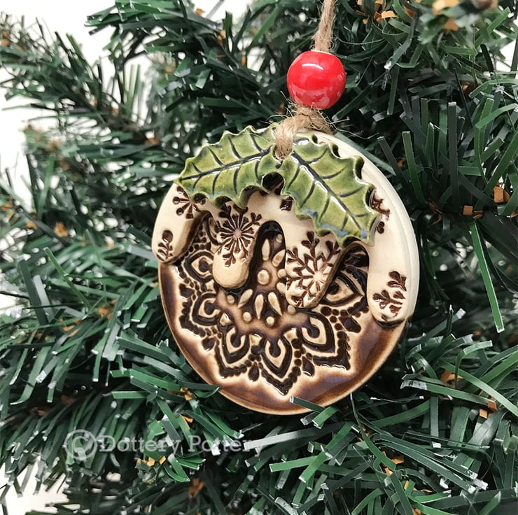 Each decoration measures 5.5cm diameter and is glazed in the front only.