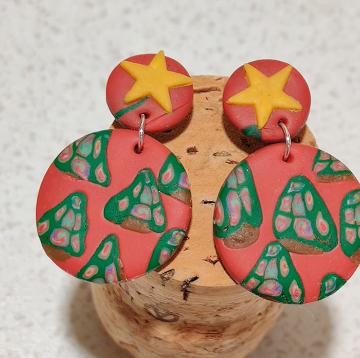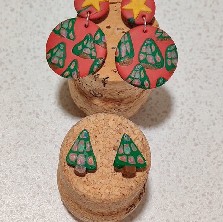 Hand made polymer clay earrings with a Christmas theme. The back is all brown. 2 pairs with a stud fixing which has been painted with hypoallergenic coating. Please see all photos for close up detail. All products handmade therefore there may be minor imperfections. Each pair sold as seen, message for more info:)
