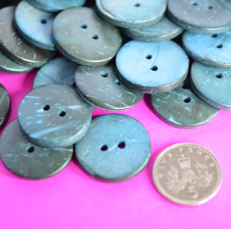 Turquoise Petrol Blue Coconut Shell Buttons 6pk 20mm