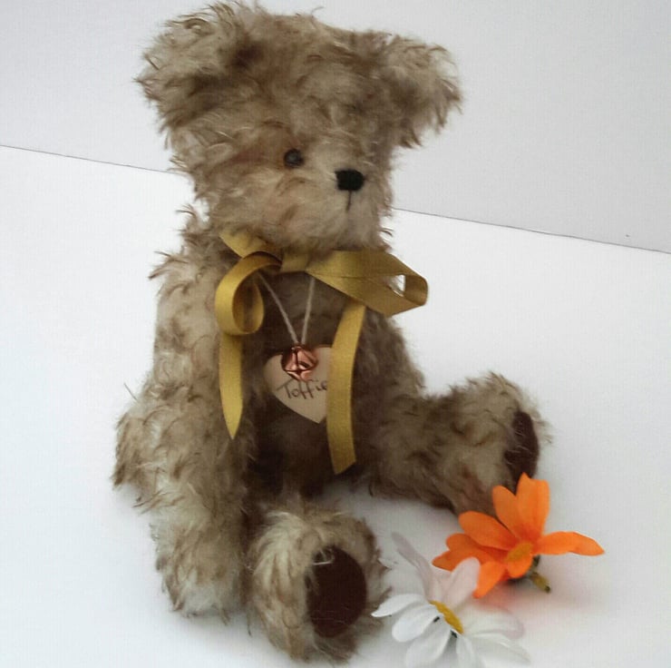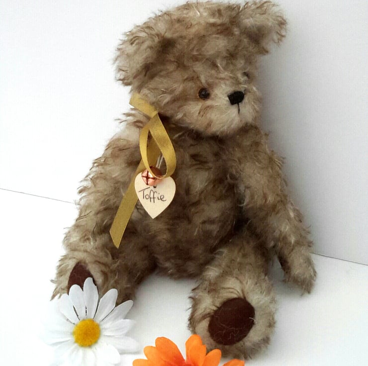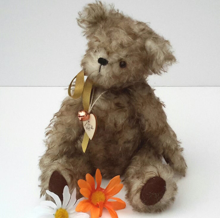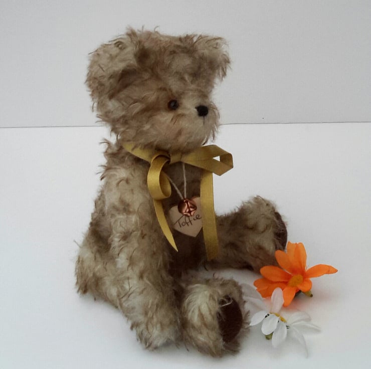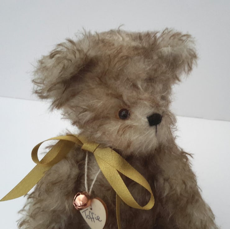 Meet Toffie, a premium mohair bear, standing at approx 10.5" tall