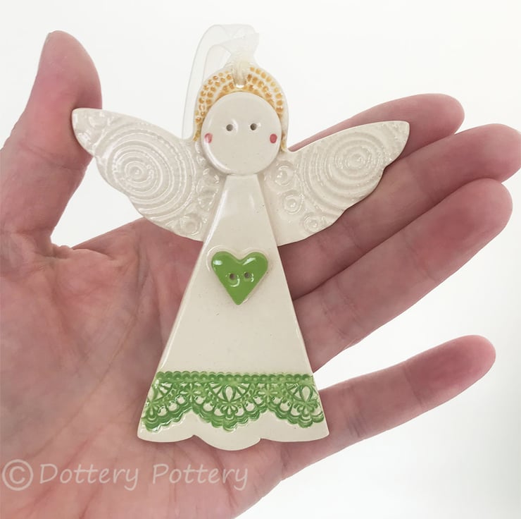 Ceramic Christmas Angel Pottery decoration green