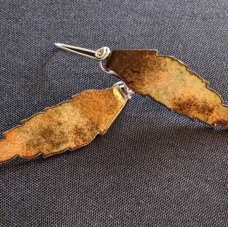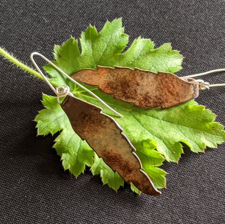 They are mounted on long, sterling silver ear hooks that are kinder to the ears than copper and contrasts in an attractive way with the autumnal colours of the earrings.