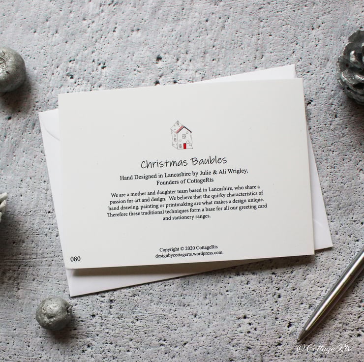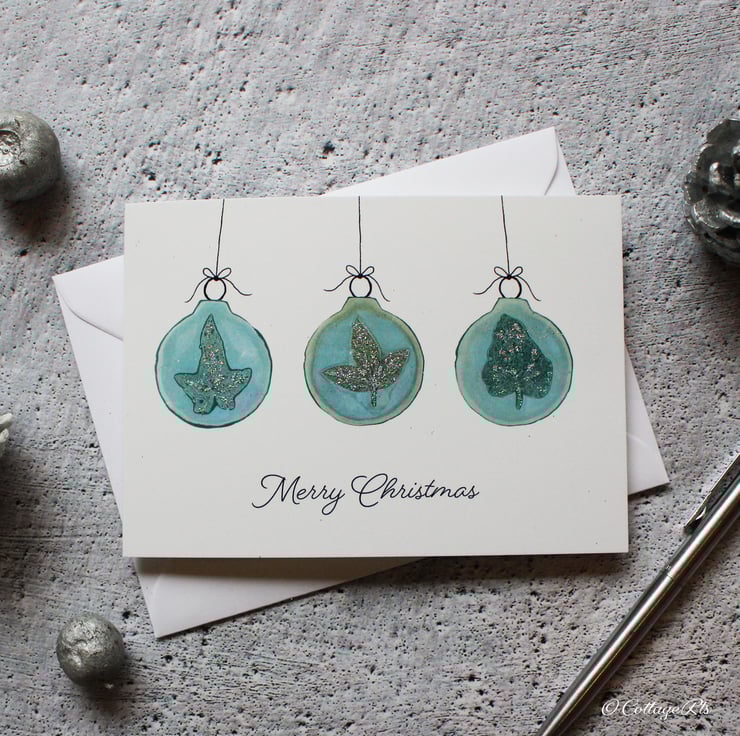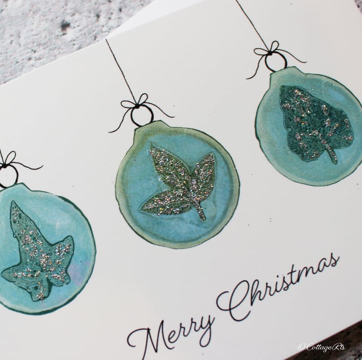 This greeting card design has been created using our own original mono-prints before being digitally printed onto a greeting card. Finally it has been hand finished with glitter to give that sparkly festive feeling!
