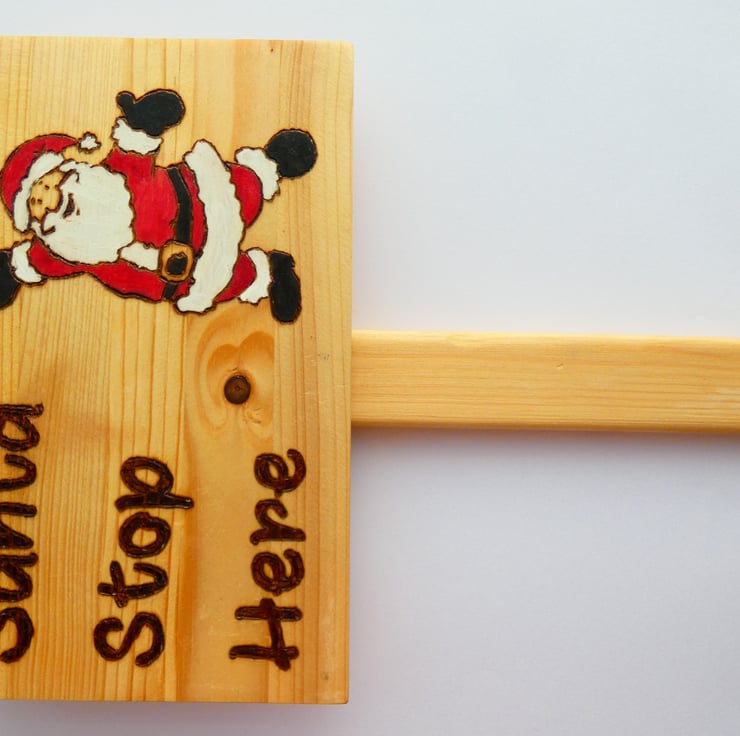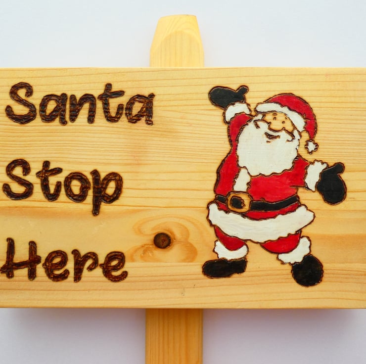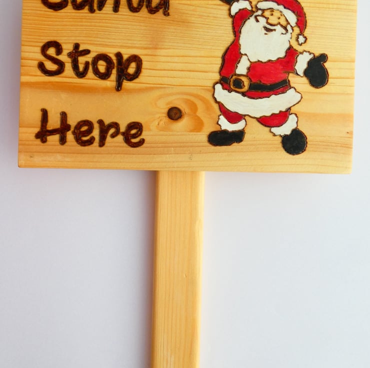 This wooden 'Santa Stop Here' sign is a fun way to decorate any environment. It has been upcycled from reclaimed wood. An ideal way to let Father Christmas know where to call.