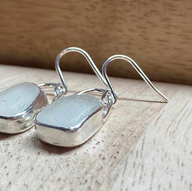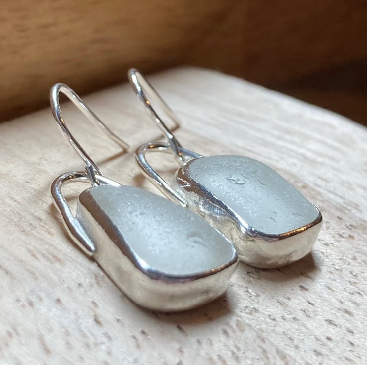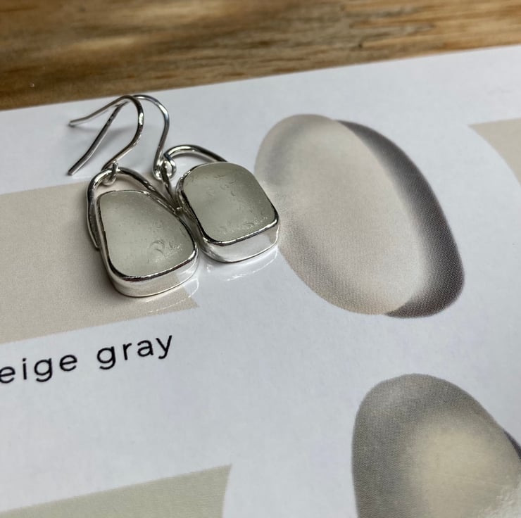 Beautiful beige-grey welsh sea glass and silver dangle earrings, absolutely stunning and elegantly unique! shine different shades in different lights, the prefect gift (or just a treat for yourself!)
