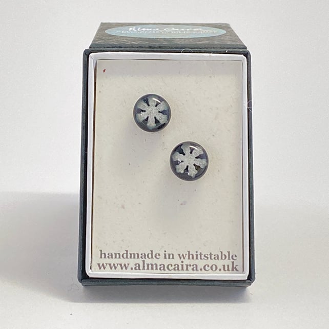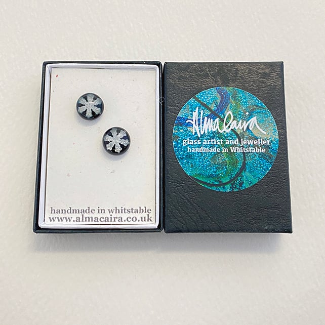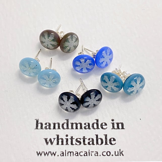 Kiln fused glass has a natural fluid quality and no two pieces are exactly the same. Earrings are created as a matching set but there will always be slight differences between the two and that's what's so lovely about designs being handmade!