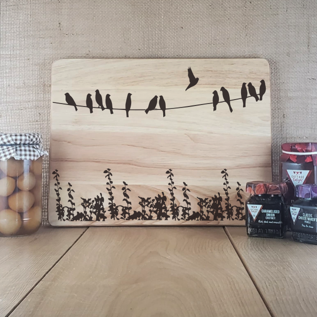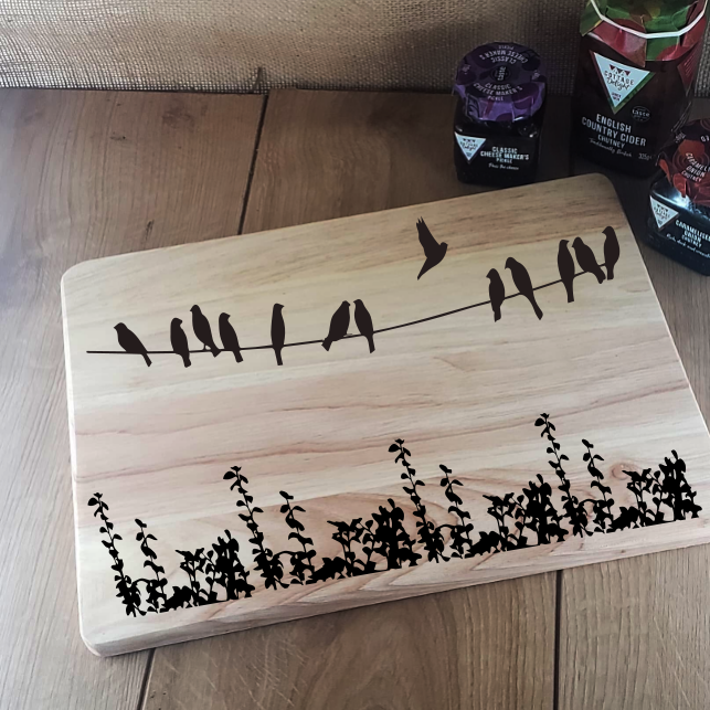 Bird on a Wire - Laser Engraved Wooden Cheese or Chopping Board