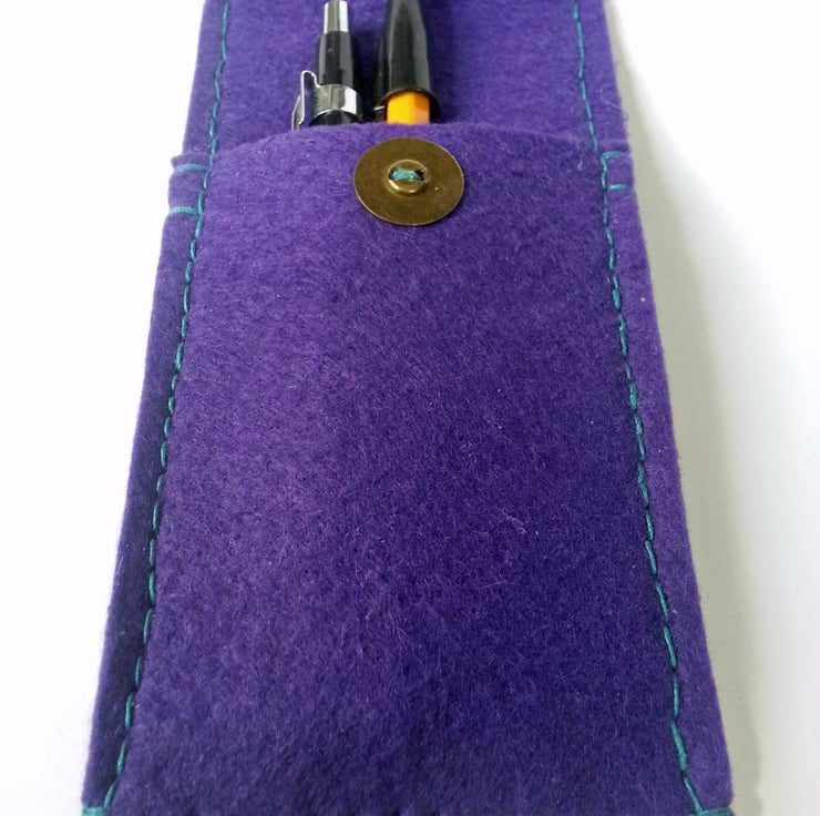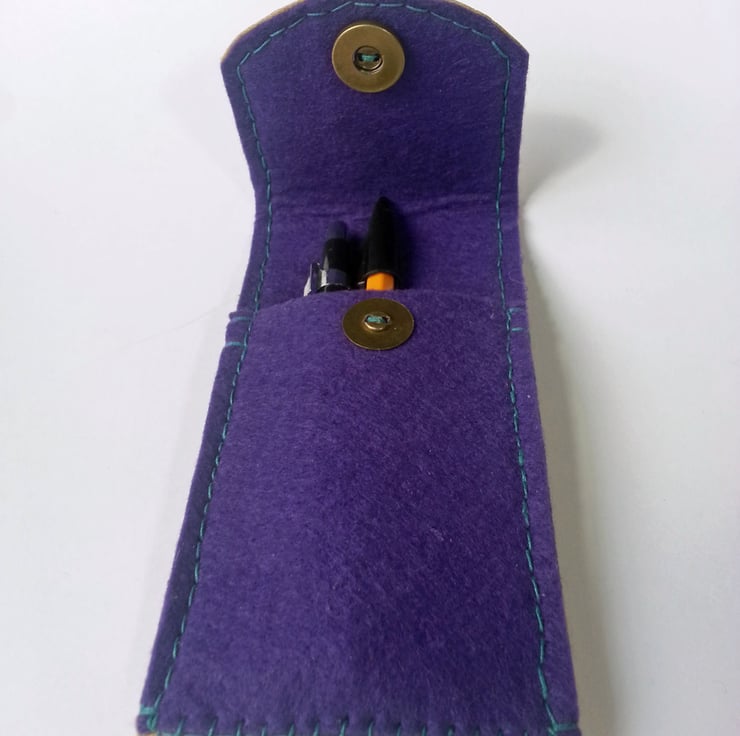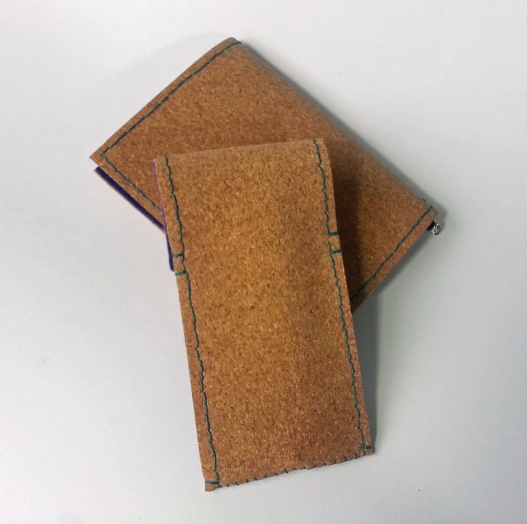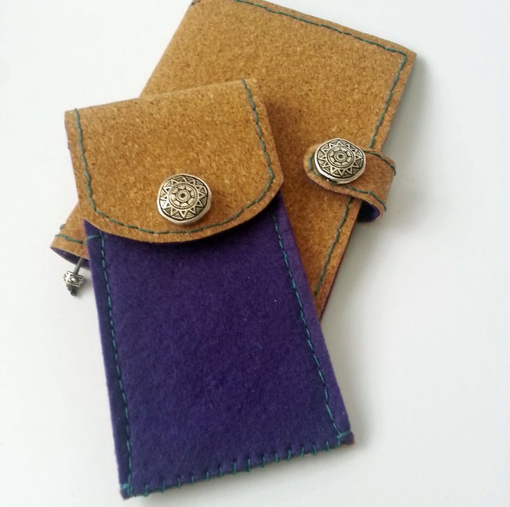- Both are made from Cork "leather", lined with a good quality wool felt in Royal Purple and the Pen Case has a Purple Felt front panel.