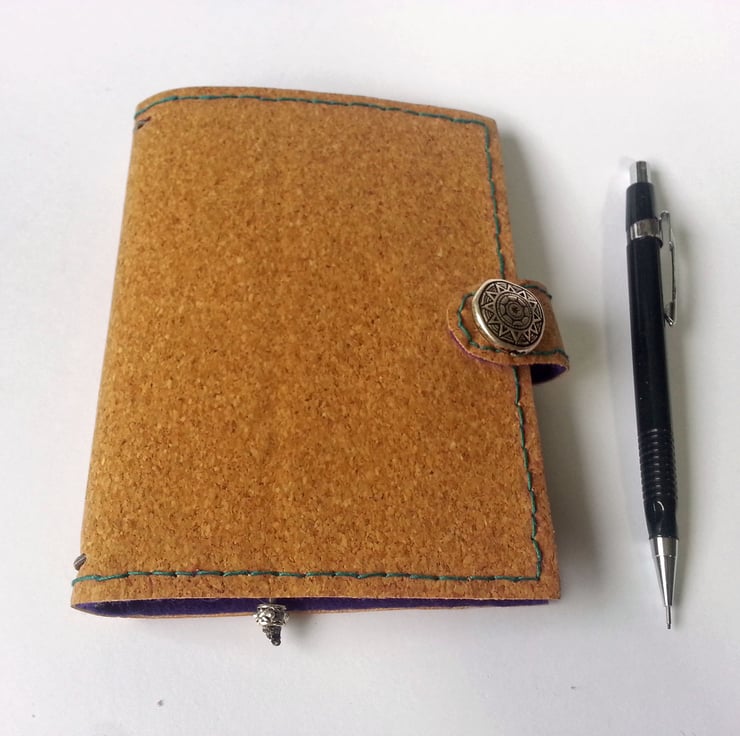 A lovely Notebook Cover and Pen Case set in Cork and Purple Felt. Perfect as a gift set.