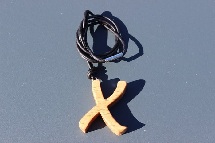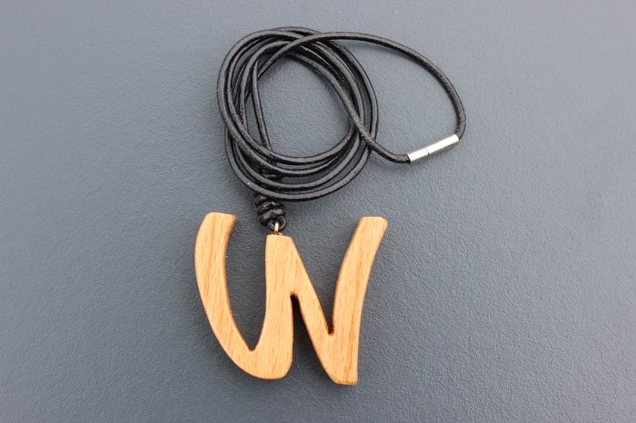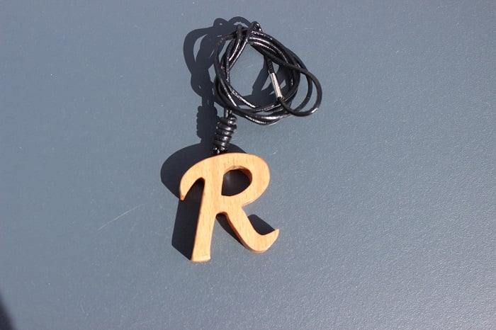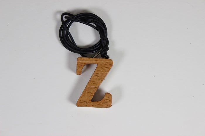 Wooden pendants cut in to the letters of the alphabet making a fun gift. The pendants are made from beech wood with a leather cord and bayonet style clasp. Beech being an ideal wood as it is both strong and splinter free. The fobs have been sanded to remove sharp edges and have been coated in a durable satin finish.