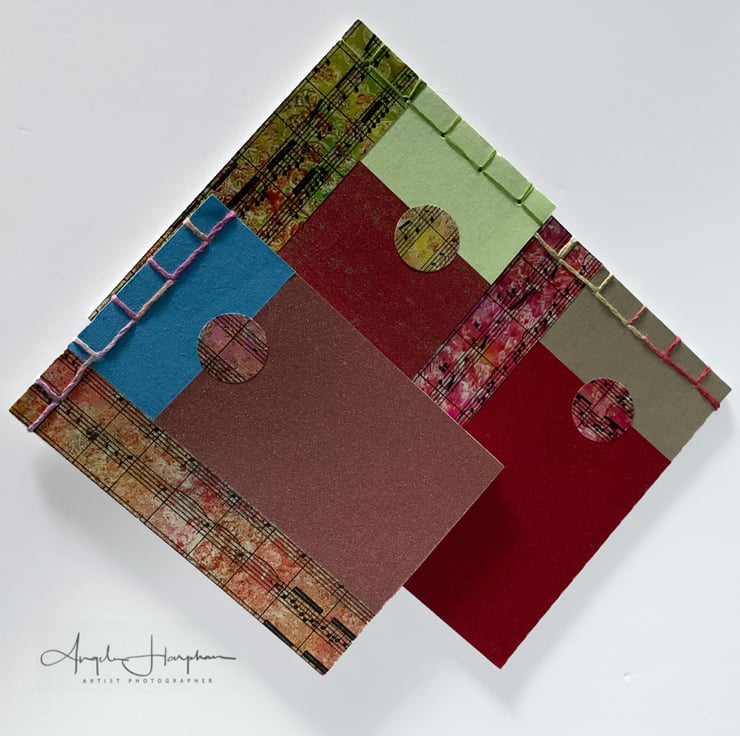 Had this lovely eco friendly paper made partly from recycled coffee cups for the inside of these super little books. I chose a contemporary design, adding the mono printed sheet music of the Brandenburg concerto, I also associate with the Berlin Brandenburg Gate, that today symbolises peace and unity.