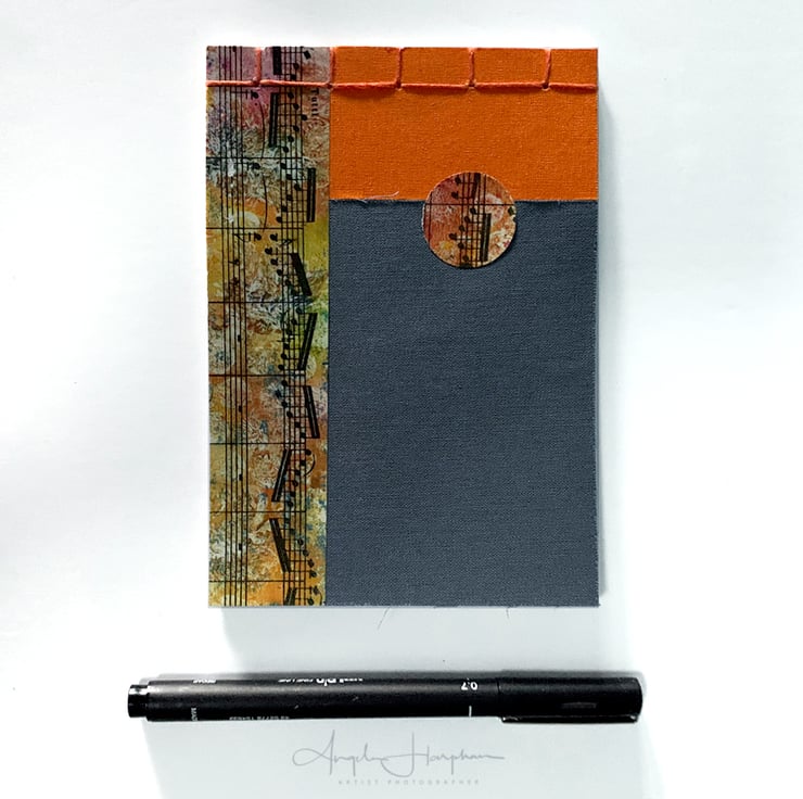 This has lovely eco friendly paper made partly from recycled coffee cups for the inside of these super little books. I chose a contemporary design, adding the mono printed sheet music of the Brandenburg concerto, that I also associate with the Berlin Brandenburg Gate that today symbolises peace and unity.