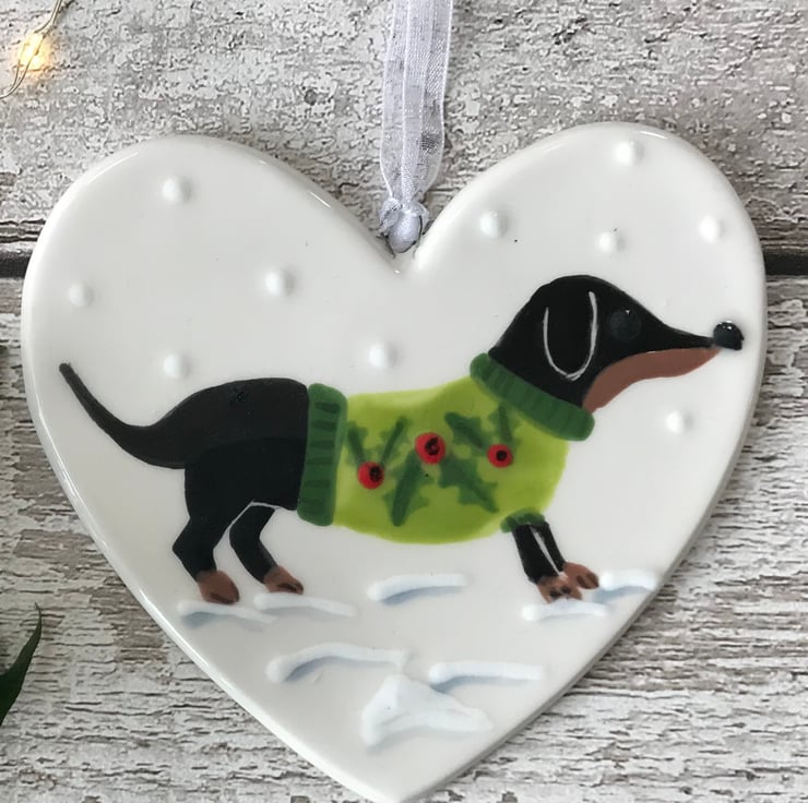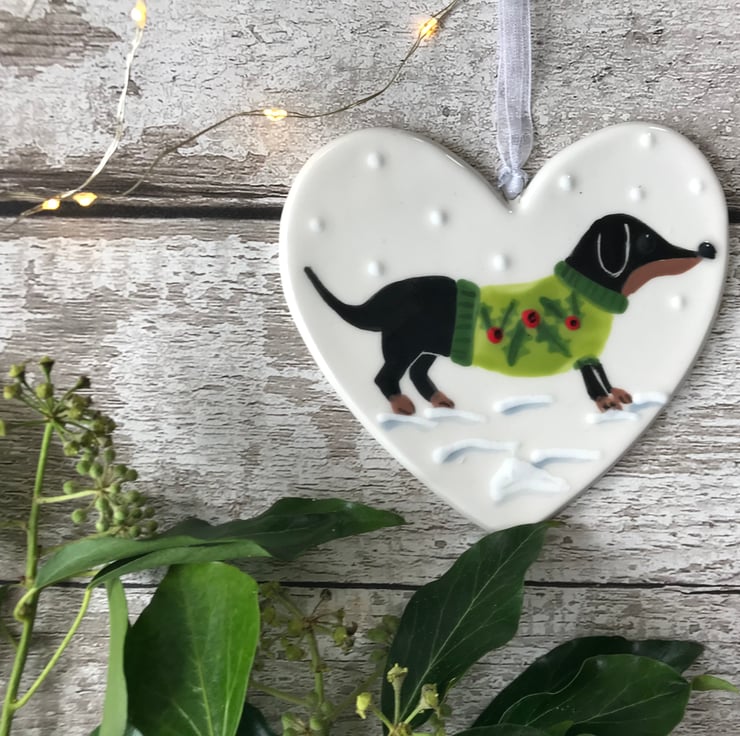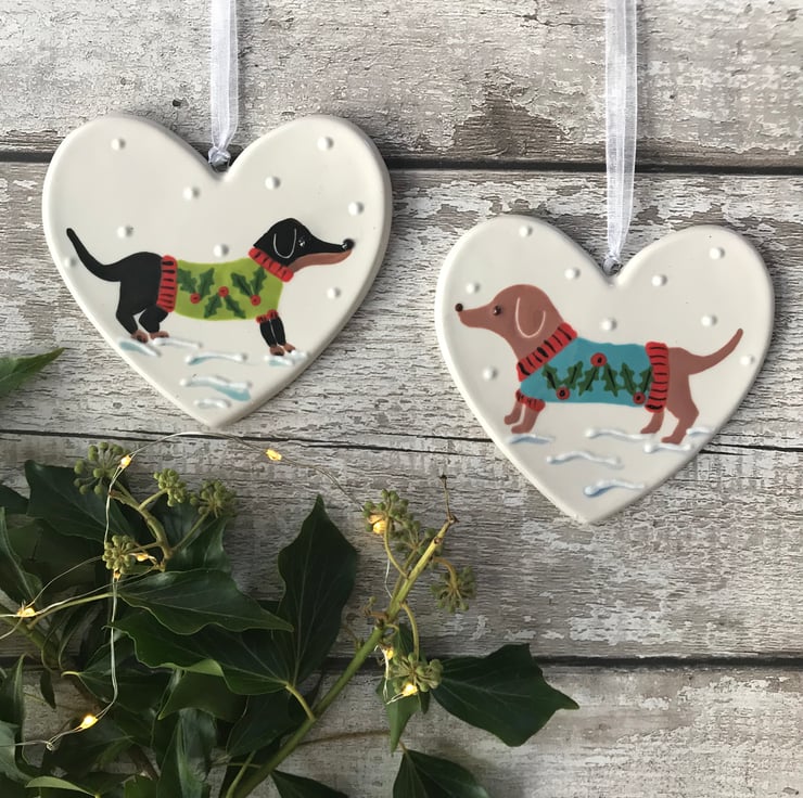 These pretty hearts feature an original hand painted design by Catherine of Sister Sister on a ceramic heart with white organza ribbon.