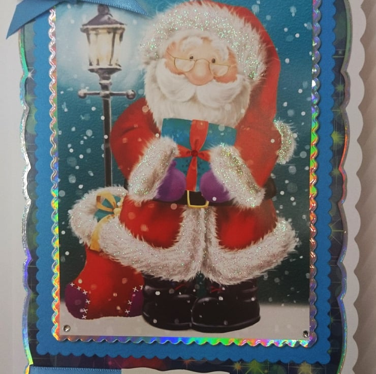 The 3D greeting is silver foiled and say "Happy Christmas".