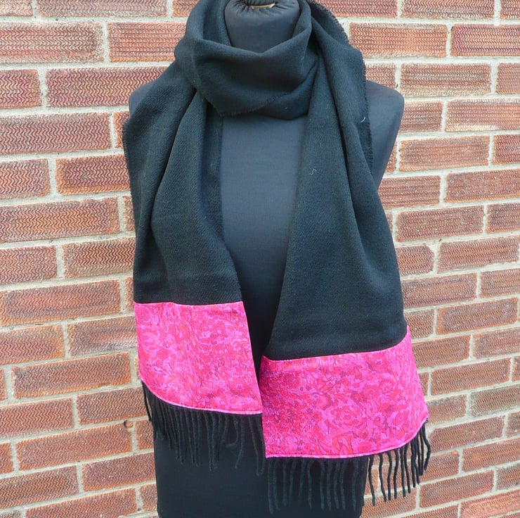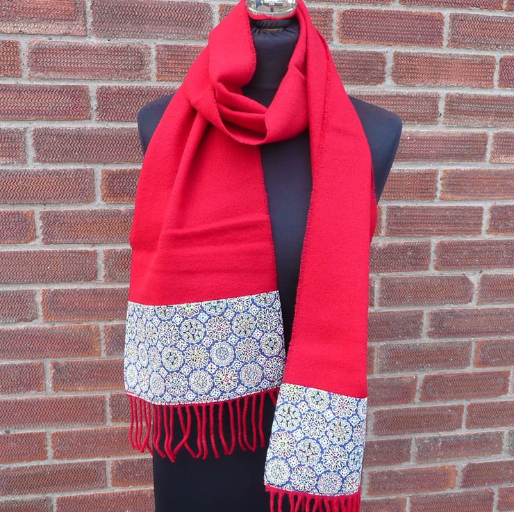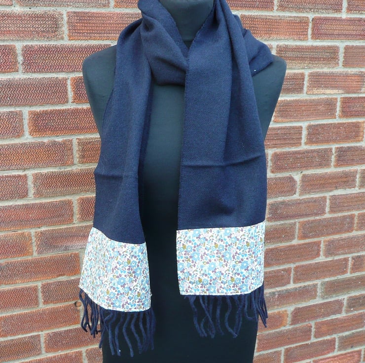 Wool scarf, lambswool scarf, Liberty cotton scarf, long scarf, neck warmer