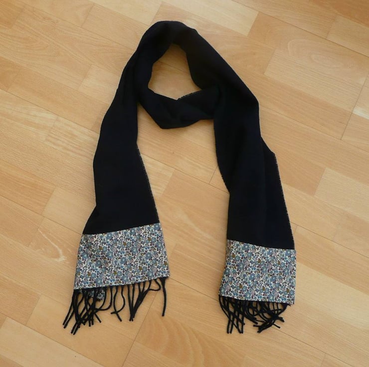 All lambs wool scarves are manufactured by Abraham Moon, I then add my Liberty fabric to them to make them unique.