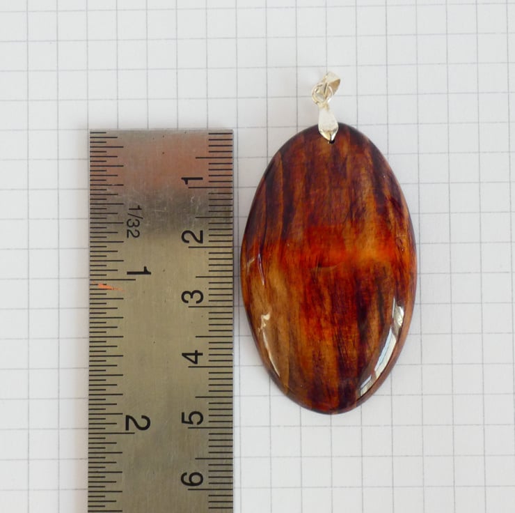 The pendant is approximately 5 cm in length, approximately 3 cm in width at its widest point and approximately 0.5 cm in depth.
