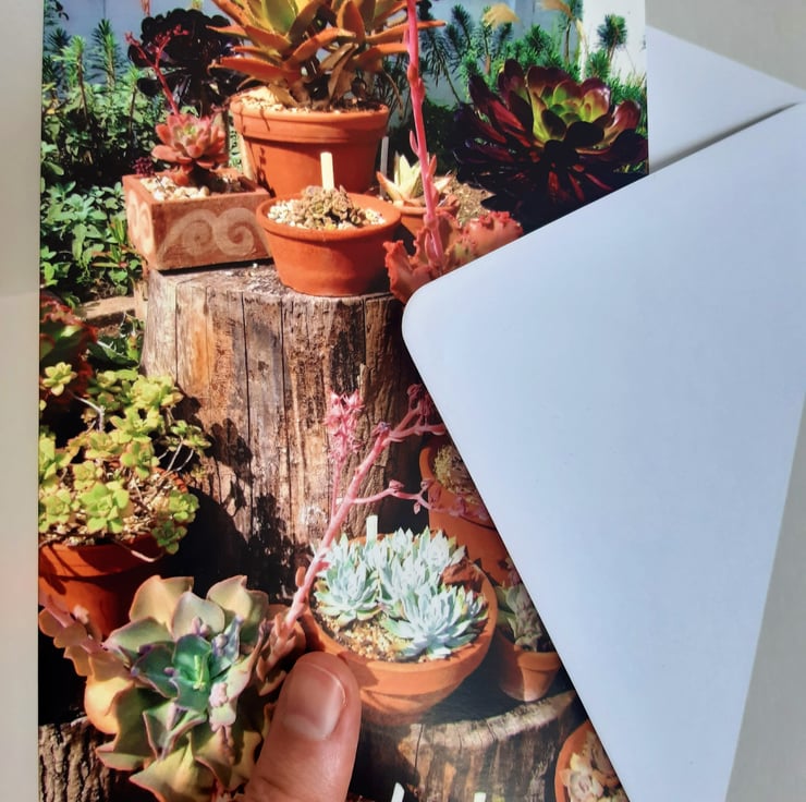 This design is part of my Beth Chatto gardens collection, and showcases a lovely cluster of succulent plants - perfect for a range of occasions.