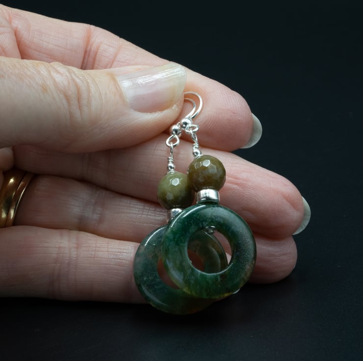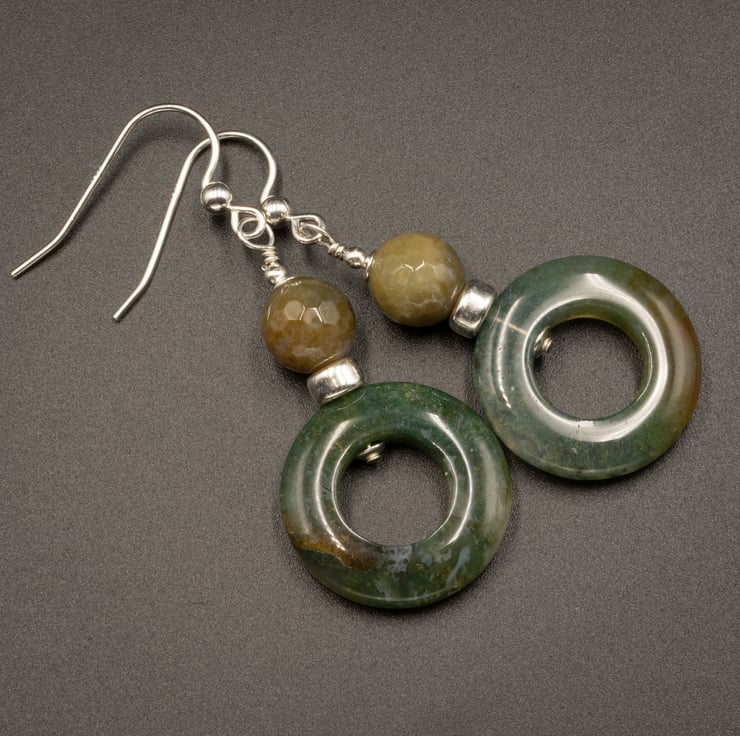 Indian agate is a gorgeous earthy tone gemstone, no two beads are ever the same but the tones blend beautifully together. For these unusual hoop drops I have selected a dusky lilac tone and an earthy green tone to create 2 separate pairs.