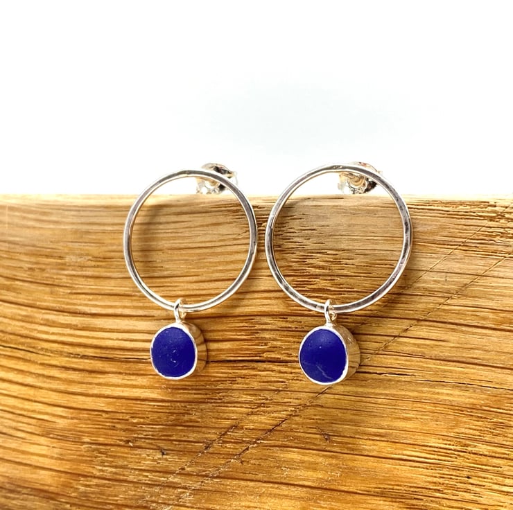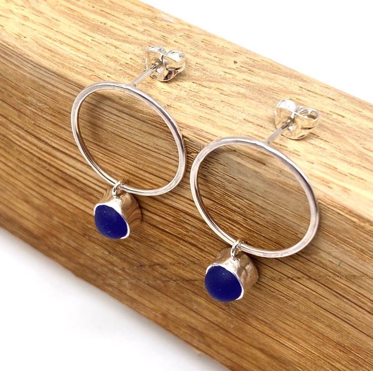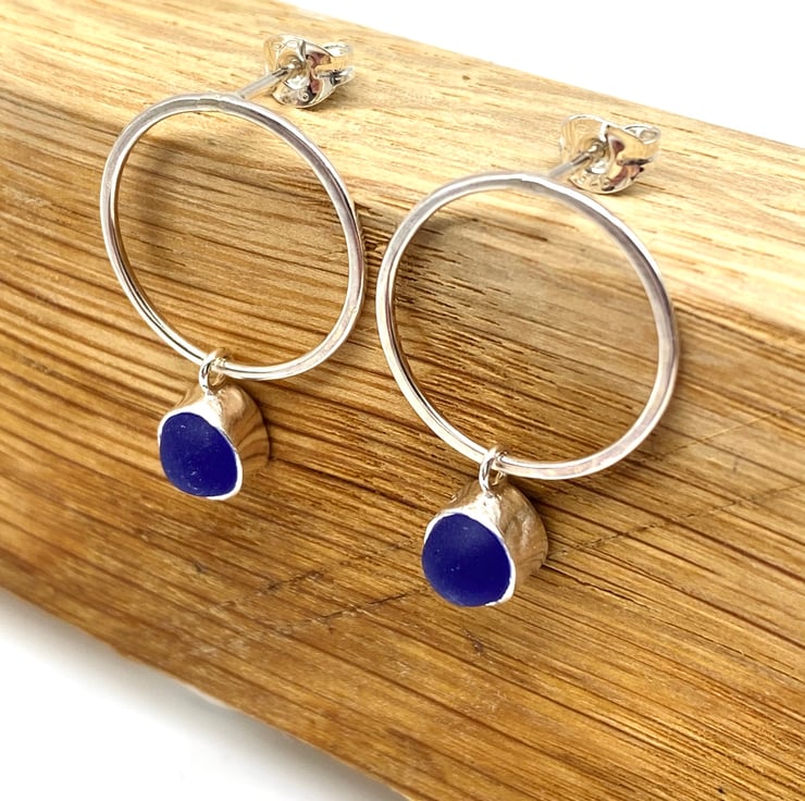 These little pieces of sea glass are set in sterling silver and hung on a sterling silver ‘bubble’. The ear post is also sterling silver.