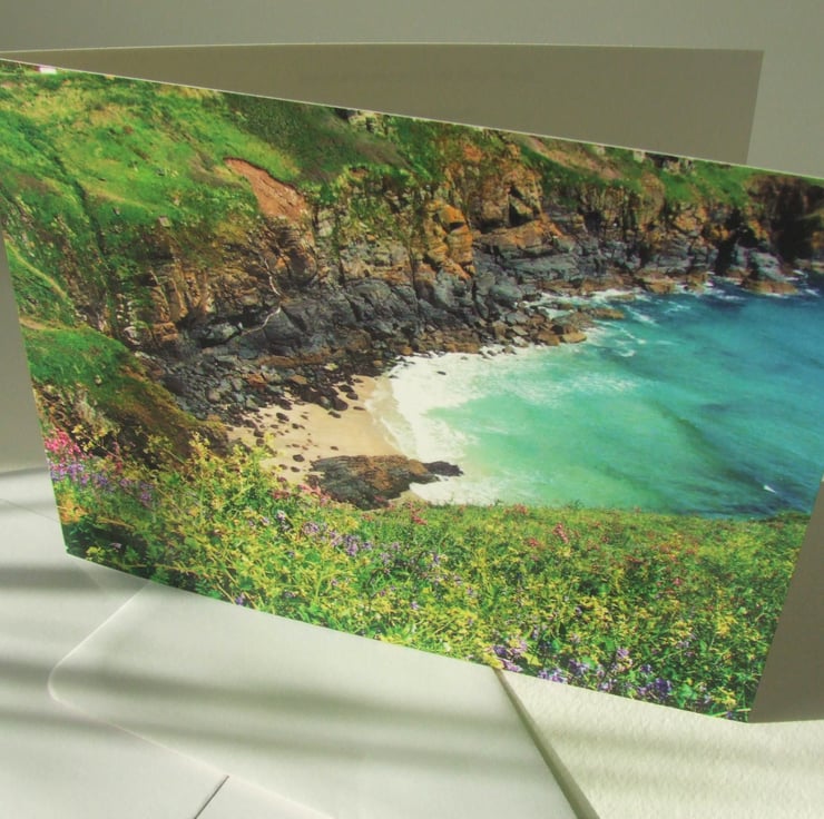 The card is 5x7 inches (closed) and is printed on high-quality 300gsm card. It comes with a recycled paper envelope.