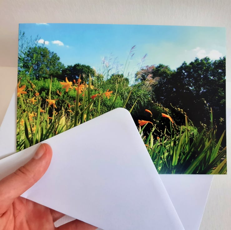 The card is 5x7 inches (closed) and is printed on high-quality 300gsm card. It comes with a recycled paper envelope.