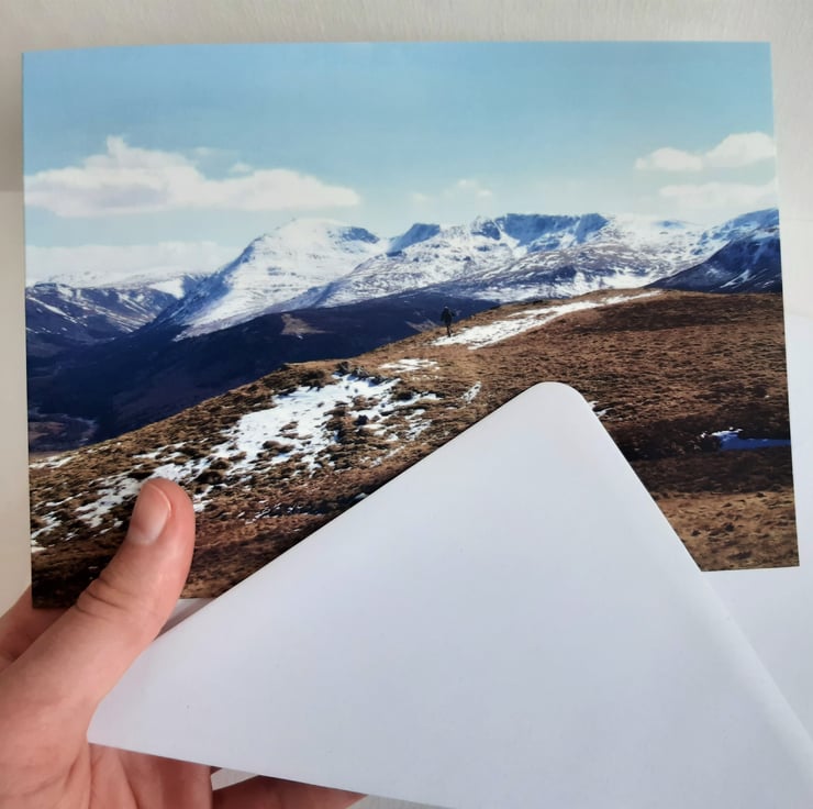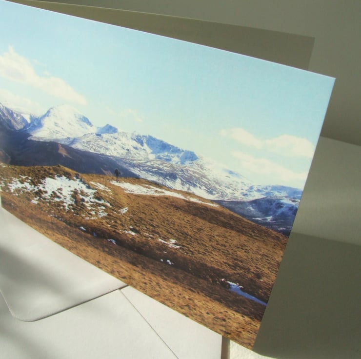 The card is 5x7 inches (closed). It's printed on high-quality 300gsm card and comes with a recycled paper envelope.
