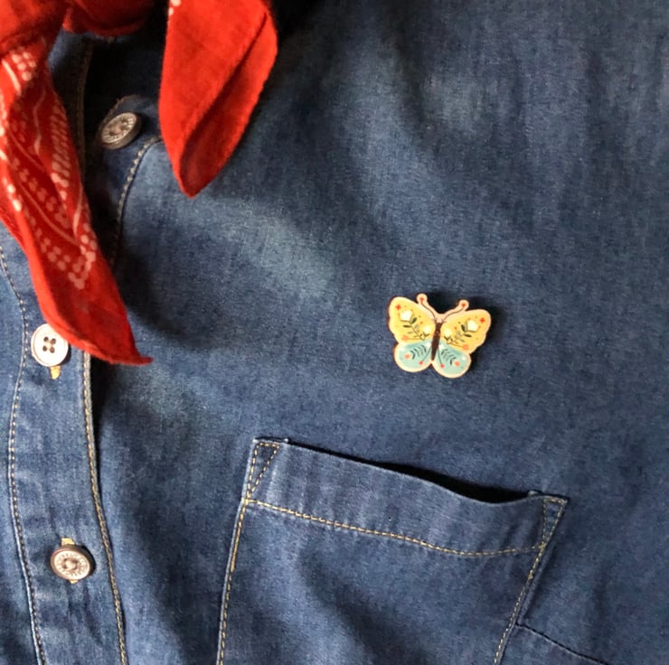 A darling wooden pin of an adorable butterfly to brighten up a jumper or coat!