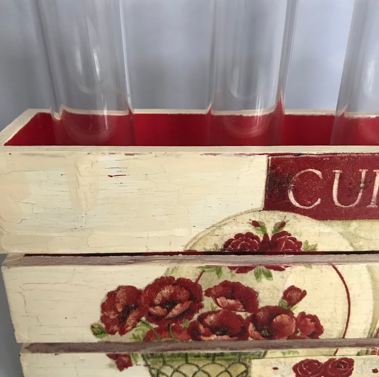 Decorated Herb Rack Tubes Cuisine Kitchen Crackle Decoupage Flower Stem Display