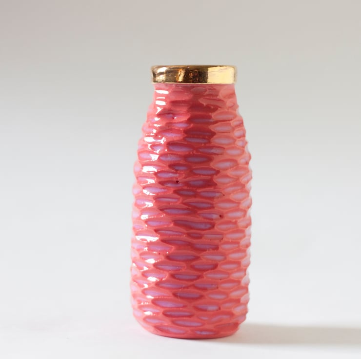 Small porcelain milk bottle vase, with a gold lustre rim, just like the gold top of yesteryear!