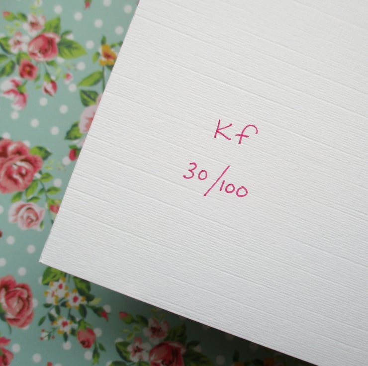 I have initialled the card on the reverse and given it an edition number as I do not intend to create more than 100 cards using original prints of this design. Each one of these cards will be an original creation which uses the same original linocut.
