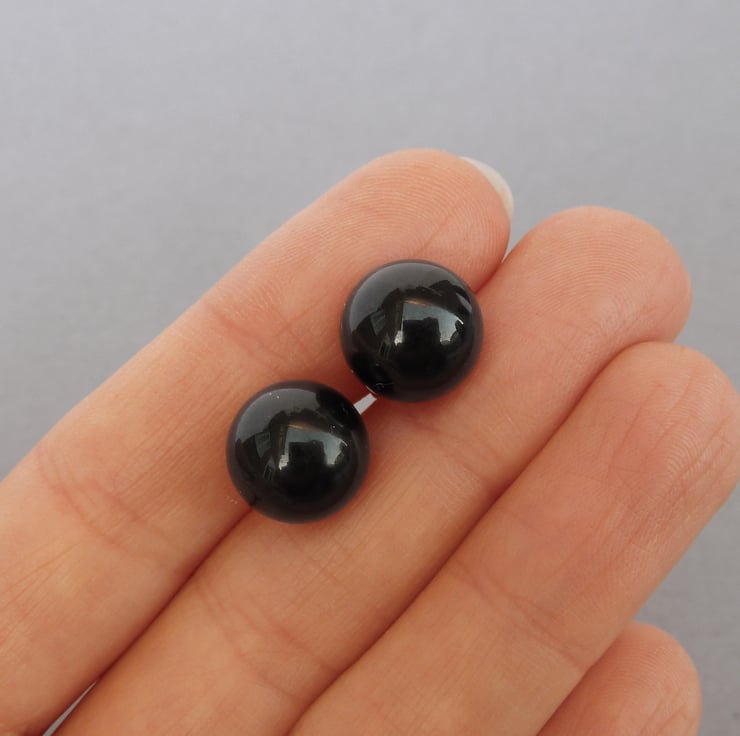 Chunky 12mm Black Glass Stud Earrings - Large Jet Black Studs - Jewellery Gifts