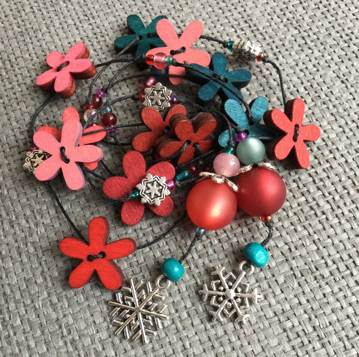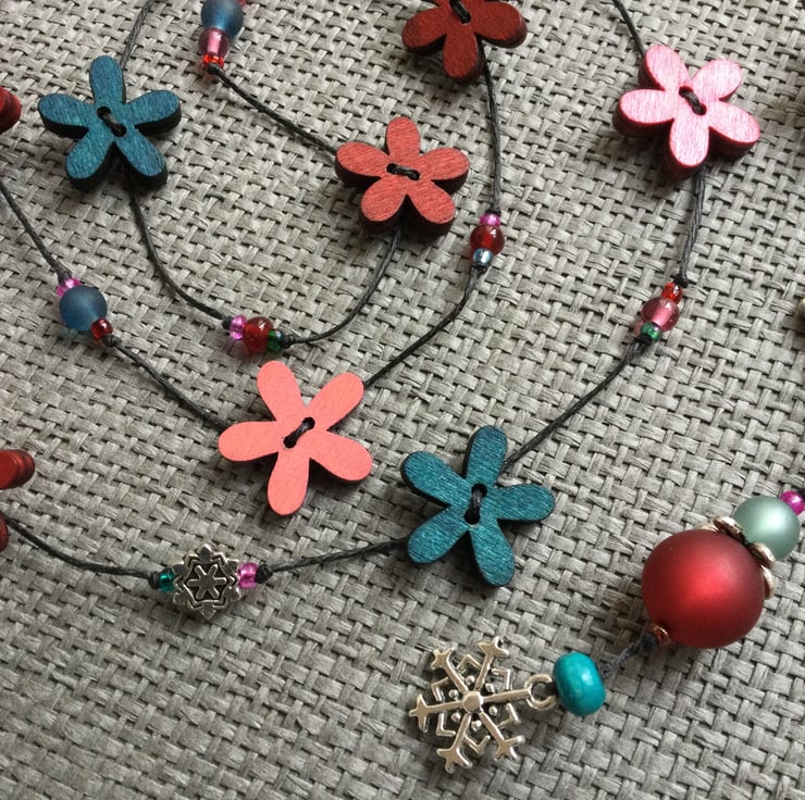 I have a passion for colour, especially bright and unusual colour combinations. I wanted happy individual pieces to go with the clothes I wear...mainly from the Swedish eco designer Gudrun Sjödén... and so the flower necklaces were born using wooden flowers that compliment the GS colour palette.
