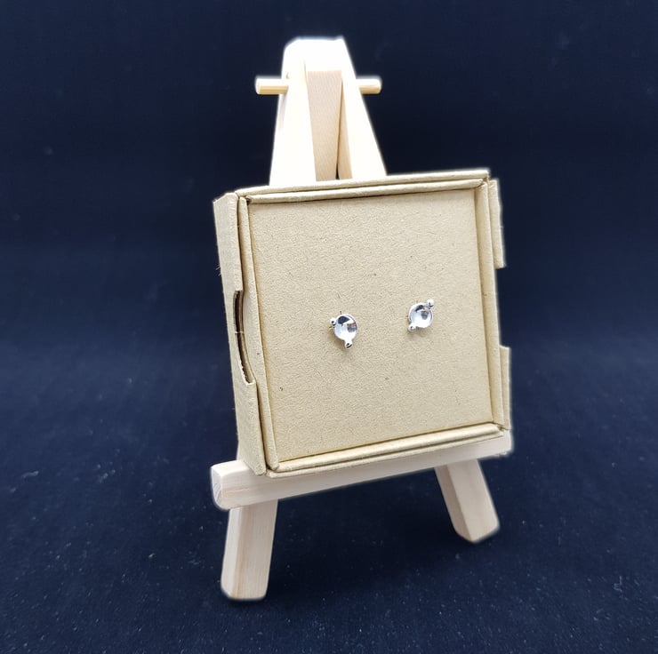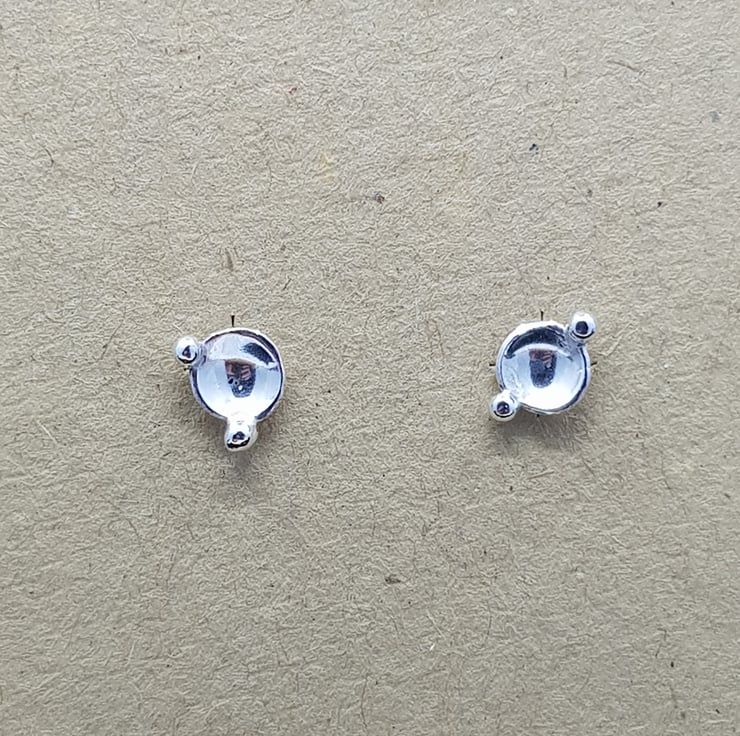 These cute earrings are part of my 'Planet & Moon' inspired collection. They feature concaved dome 'planets' each with two mini ball 'moons'. They have been handcrafted in sterling silver, and are one of my original designs. Being small, they are perfect for everyday wear and for ears of any size!