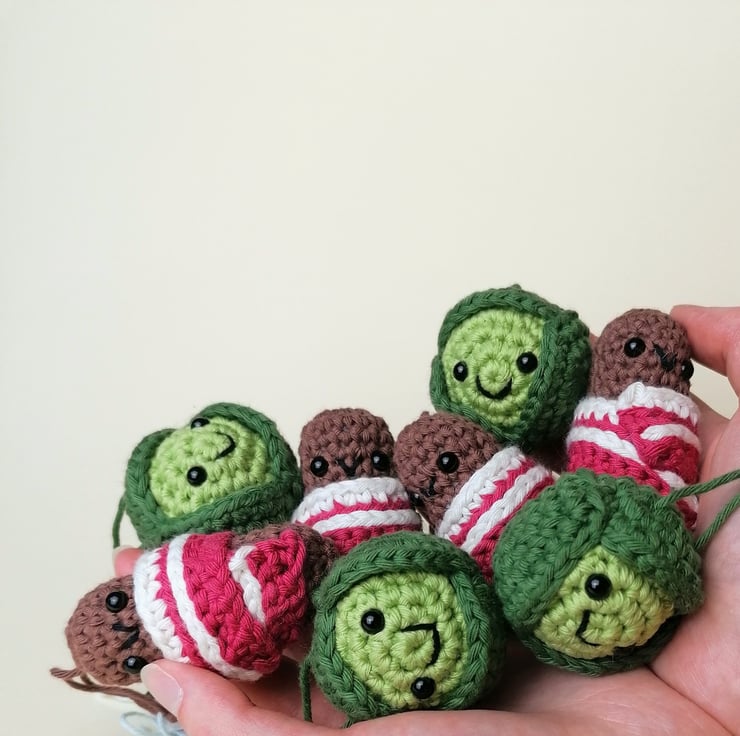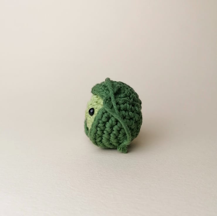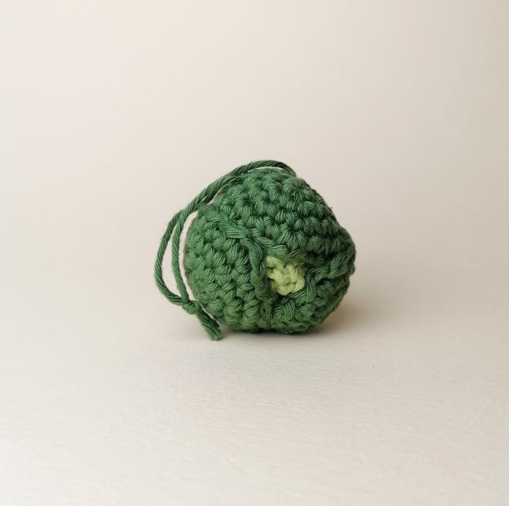 Due to the handmade nature of this product, the sprout that you receive will be slightly different to the one in the photo, but he will be just as cute! Each sprout measures approximately 5cm top to bottom, and 4,5cm front to back, with a hanging loop of about 6cm. They have been crocheted by hand from cotton yarn with polyester stuffing, and plastic safety eyes.