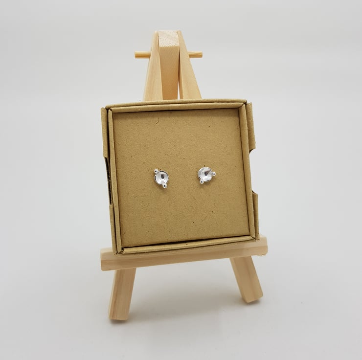 Cute unique handcrafted domed stud earrings made in sterling silver. They have been given a shiny polished finish, and being small are perfect for ears of any size.
