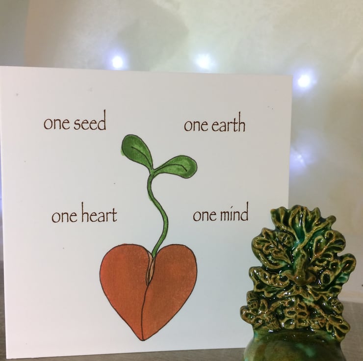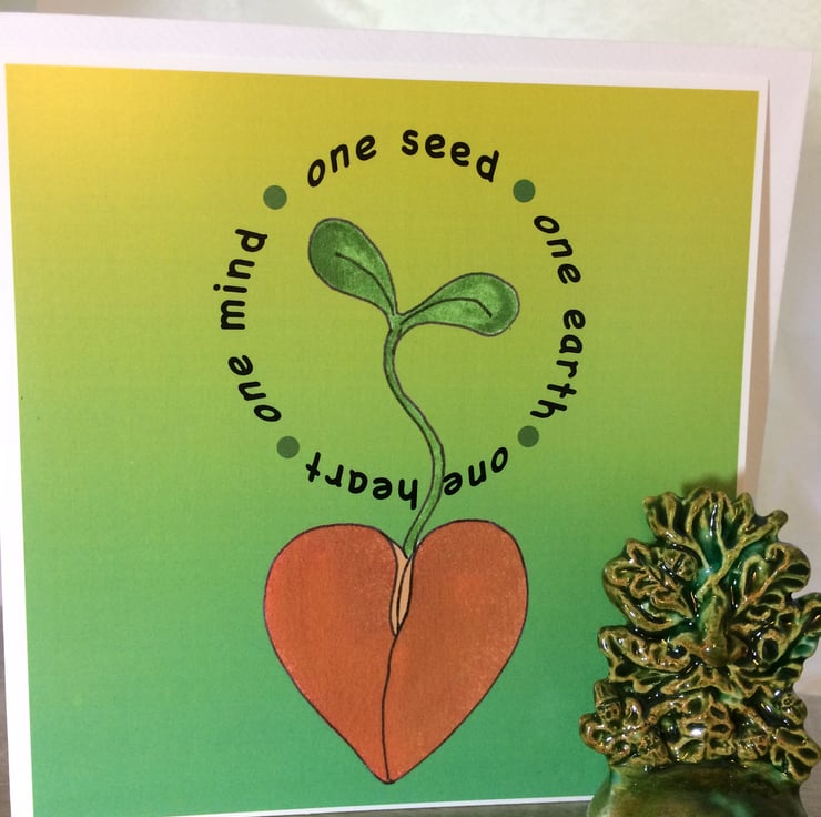 A card for all seasons, gardeners of the world unite! One Seed, One Earth, One Heart, One Mind.