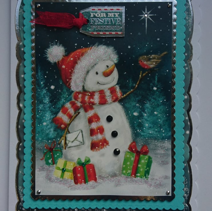 The 3D greeting is silver foiled and says "For My Festive Friend".
