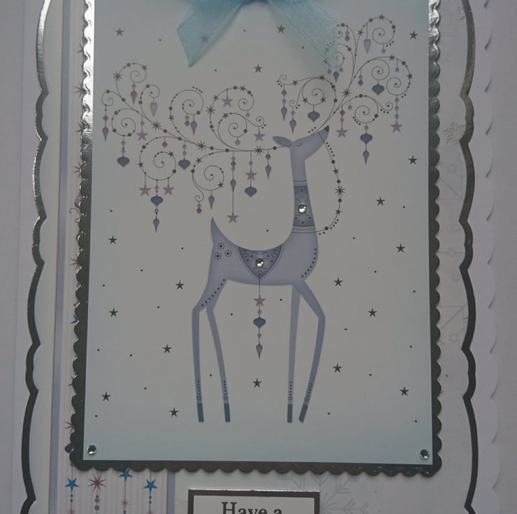 Christmas Card Ornate Blue Ornate Reindeer with Baubles
