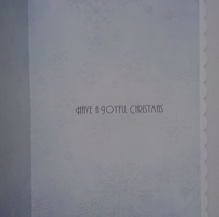 The inside of the card has a double full colour insert. The printed sentiment says "Have a Joyful Christmas" and there is plenty of room to write your own special message.