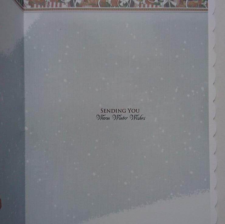 The inside of the card has a double full colour insert. The printed sentiment says "Sending You Warm Winter Wishes" and there is plenty of room to write your own special message.